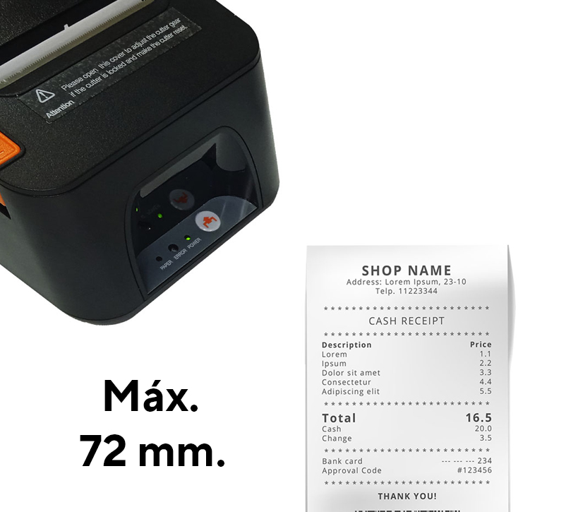 • Diseñado para ser usado con rollo de tickets.