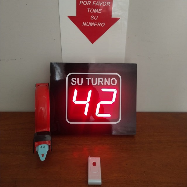 Sistema de Turno con Pantalla Electrónica de 2 Dígitos, Dispensador de Tickets y Pulsador Inalámbrico